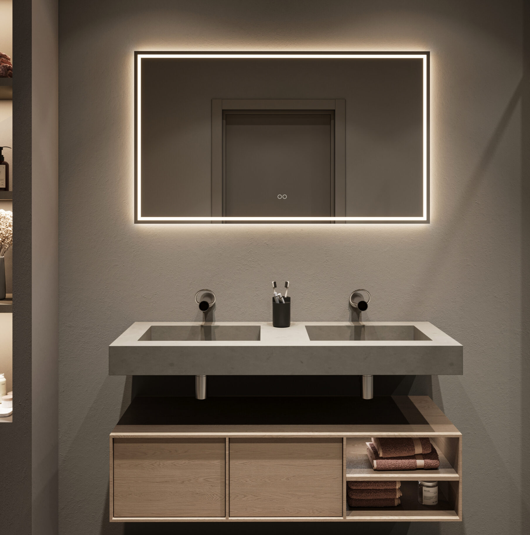 • Inclusief spiegelverwarming en dimbare touch schakelaar.